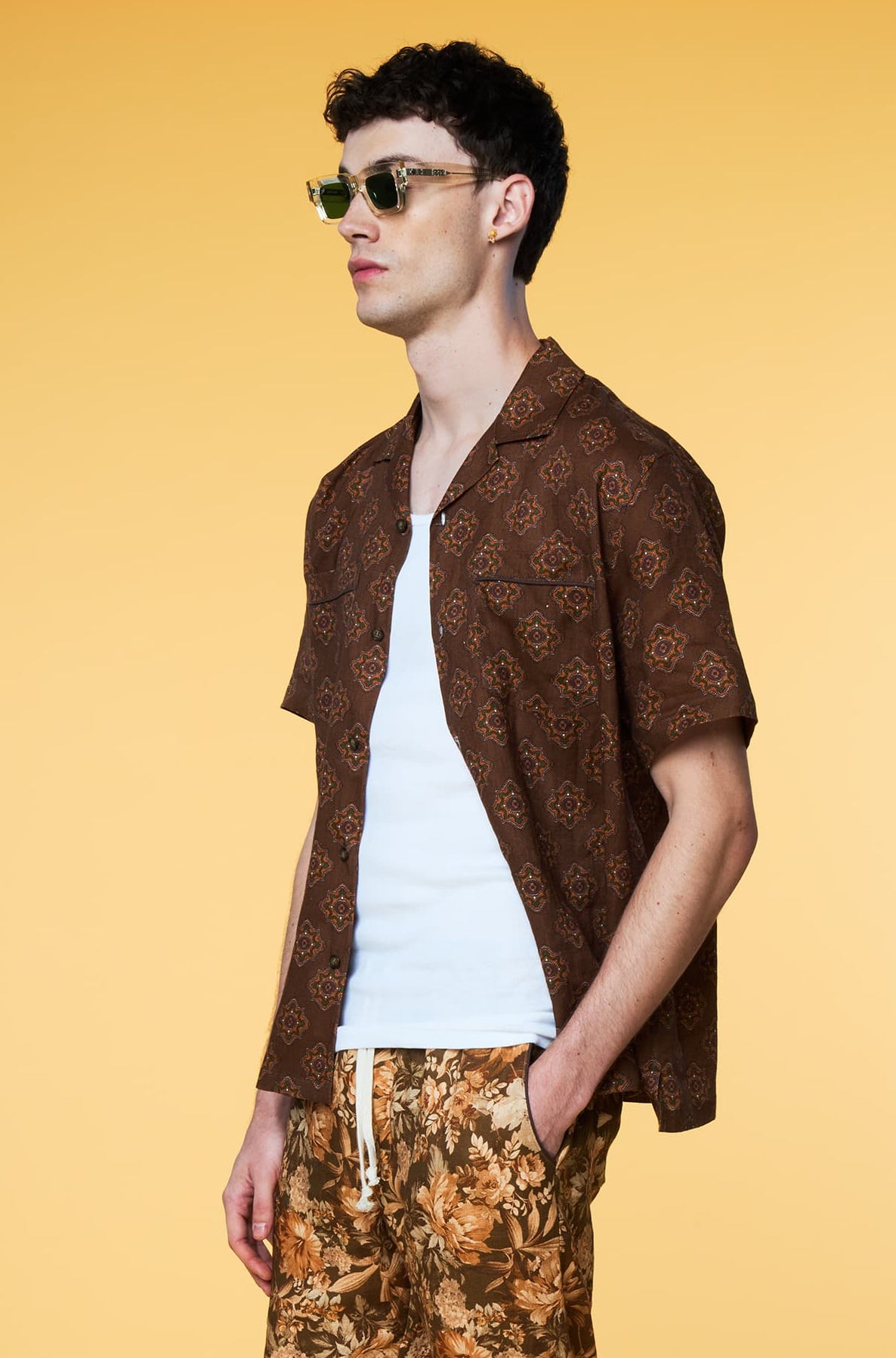 Men’s Linen Set - Brown Geo Olive Botanical Weekend - 2 of 5