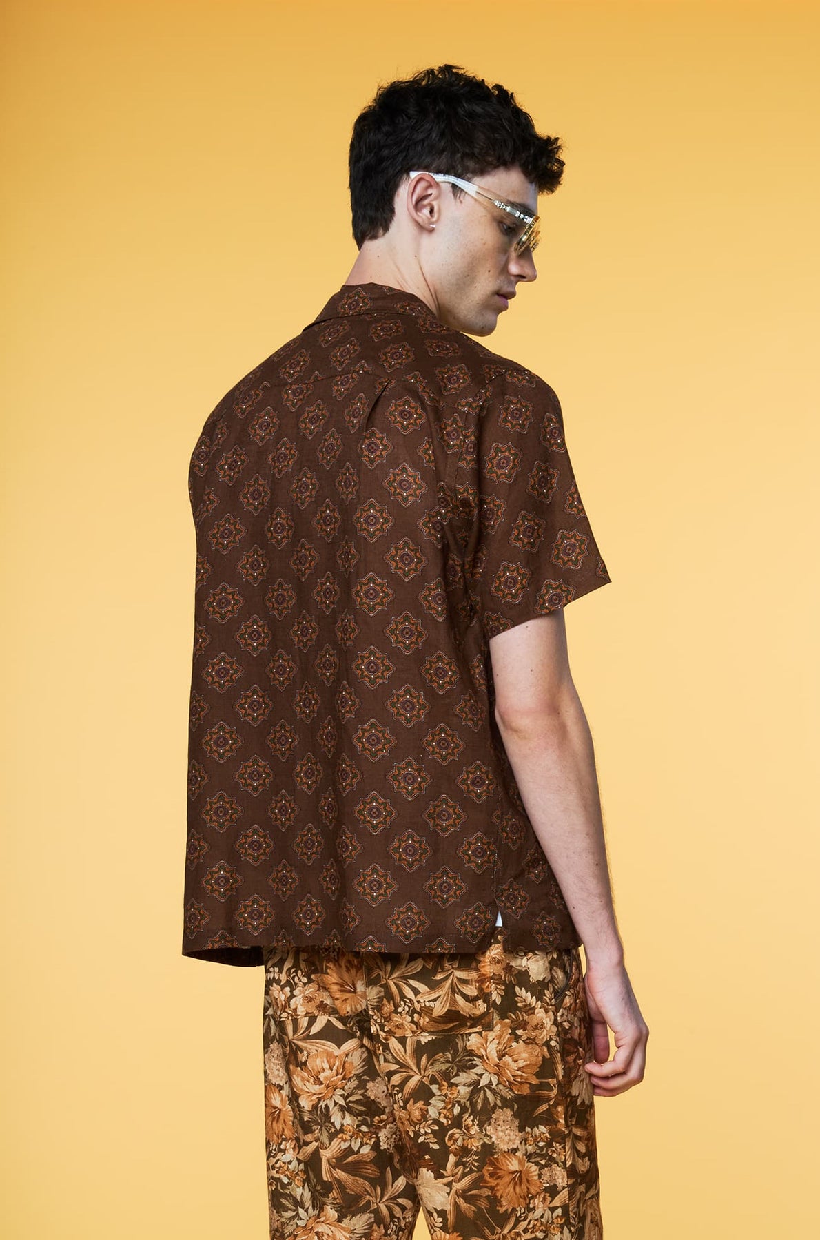 Men’s Linen Set - Brown Geo Olive Botanical Weekend - 5 of 5