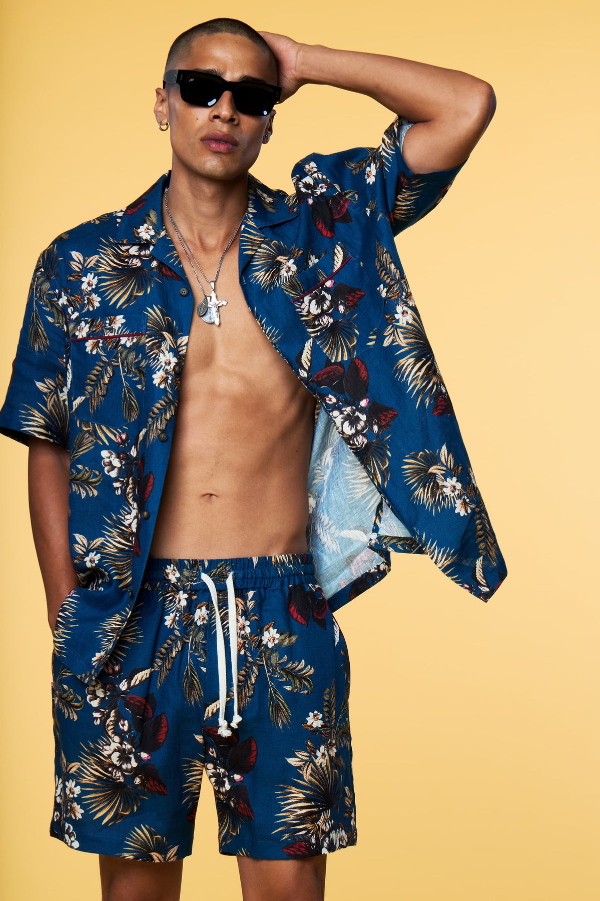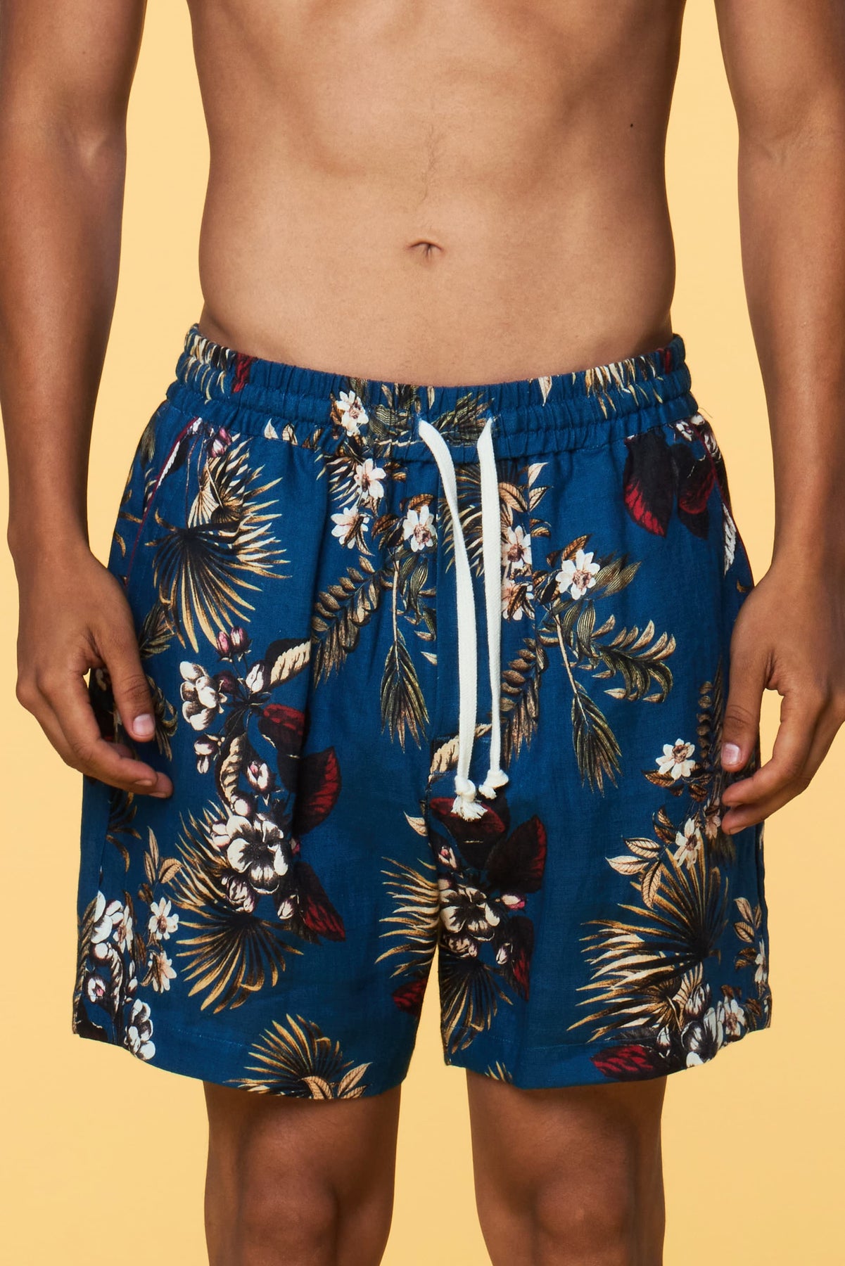 Pursue the idea of faraway destinations in this statement Hawaiian Floral. Printed on our signature linen, this floral short creates a playful and elegant conversation piece. Pair it with our Hawaiian shirt as a matching set or try our pairing recommendations.